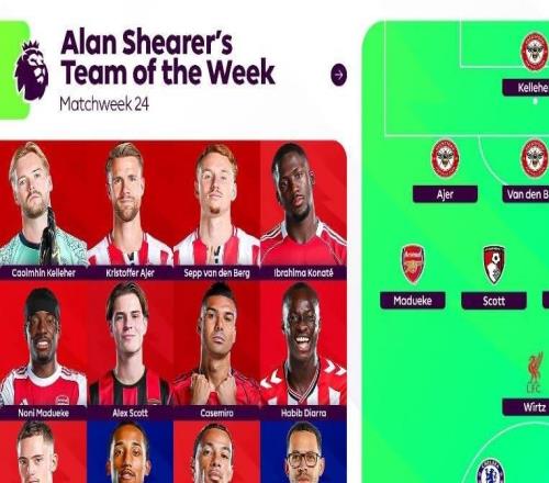 希勒评英超第24轮最佳阵:维尔茨、科纳特、卡塞米罗等人在列 -